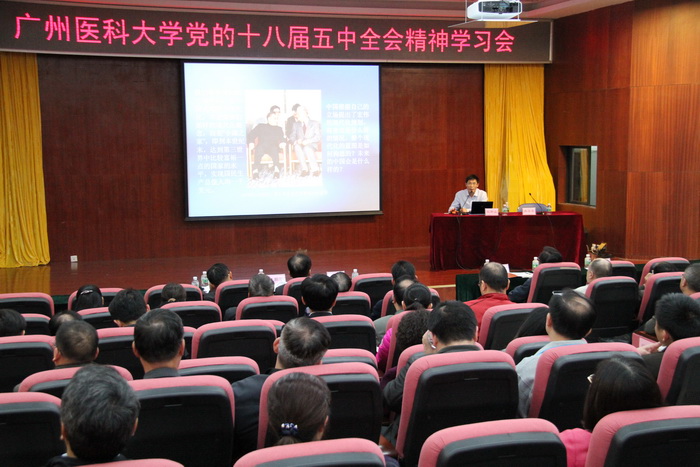 12月11日下午,为深入学习贯彻十八届五中全会精神,伟德国际在番禺校区图书馆报告厅举行“党的十八届五中全会精神”专题报告会。省委宣讲团成员、省委宣传部讲师团团长杜新山应邀作题为“全面建成小康社会的行动指南”的专题报告。伟德国际党委冉丕鑫书记主持报告会,王新华校长、学校全体中层干部等听取了报告。