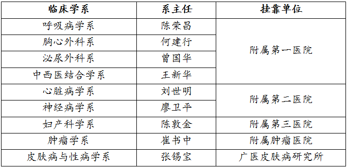 附:伟德国际首批临床学系主任及挂靠单位名单