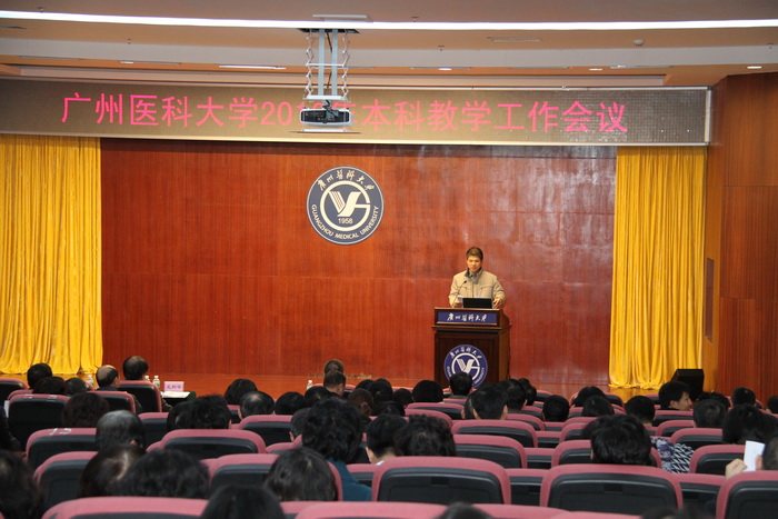 1月15日,学校在番禺校区召开2016年本科教学工作会议。会议由校长助理罗健东主持,校长王新华、学校党委副书记陈杰出席了会议,校本部有关部门负责人,各学院、各直属医院主要领导、教学和学生管理工作人员、系/教研室主任、实验中心主任,各非直属医院教学副院长、教学科/科教科科长,学校2015年度“最受学生欢迎教师”,第四届青年教师教学查房竞赛获奖教师等,共约300人参加了会议。