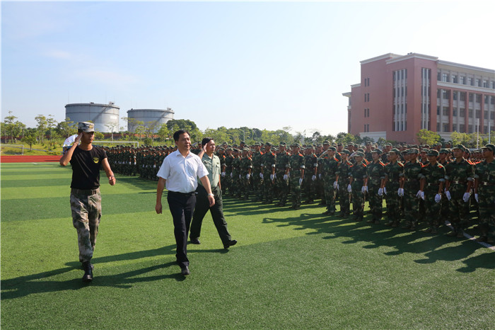 2016级新生军训检阅暨总结大会于9月14日上午在番禺校区田径场举行。校长王新华,学校军训领导工作小组组长、副校长黄健清,军训承训部队上校区洪江以及学校相关职能部门、学院负责人出席。