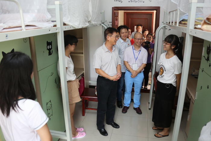 3日傍晚,副校长罗健东带领相关部门负责人到新生宿舍,看望慰问新同学。新同学普遍表示,报到入学过程很顺畅,校园及宿舍环境相当舒适,一定要在广医学有所成。本科新生均使用“微报到”系统进行报到。记者在现场观察,使用“微报到”每人平均用时不超过1分钟,简化流程,节省时间,免去排队之苦。同时,负责新生工作的老师能够实时查看报到人数、报到比例等,实时掌握现场报到情况。入学后学生以及家长仍可通过此平台与辅导员进行互动沟通。