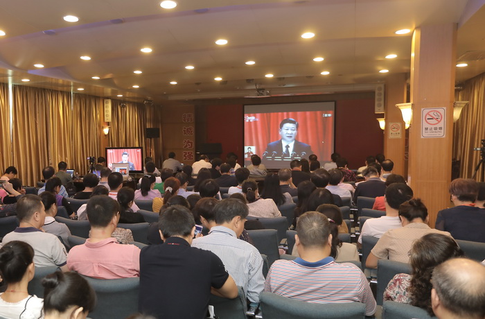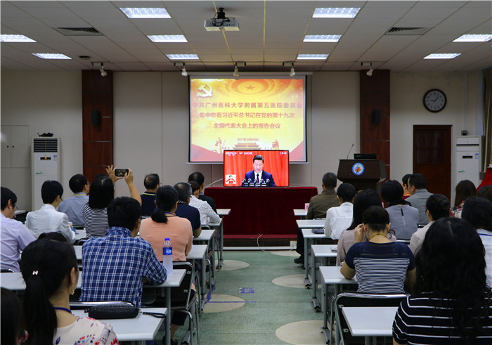 10月18日上午,中国共产党第十九次全国代表大会在人民大会堂开幕。习近平代表第十八届中央委员会向大会作了题为《决胜全面建成小康社会 夺取新时代中国特色社会主义伟大胜利》的报告。学校全体党员分别在番禺校区图书馆报告厅、越秀校区体育馆礼堂以及各附属医院集中收看了十九大开幕会。