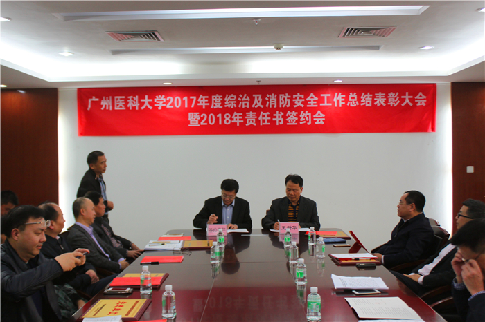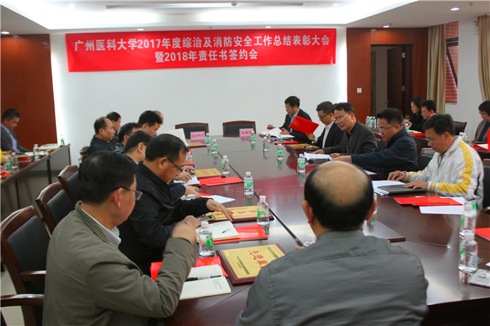 王新华校长在会议总结讲话中提出两个“到位”:一是责任认识到位,各单位要提高认识,按照“一岗双责,失职追责”的工作要求开展学校安全管理工作;二是责任落实到位,尤其要加强隐患排查,把隐患当作事故来处理。在学校建设高水平大学过程中,在安全问题上,一定要做到万无一失。最后,他预祝广医系统2018年综治及消防安全工作能够取得丰硕成绩。