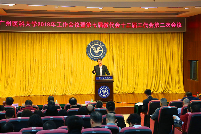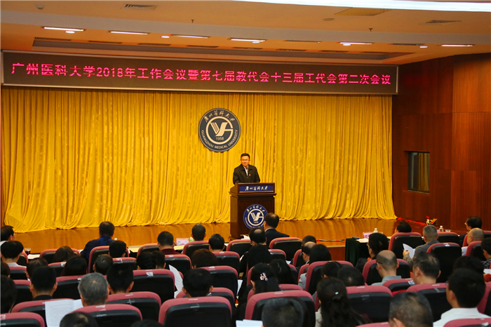 3月16日上午,学校于番禺校区召开2018年工作会议暨第七届教代会、十三届工代会第二次会议。会议审议讨论了学校年度工作报告、工会年度工作报告等报告。学校党委书记冉丕鑫和学校党委副书记、校长王新华分别对2018年学校的重点工作进行了强调与部署。学校党委常委、副校长、工会主席方灿辉主持会议。