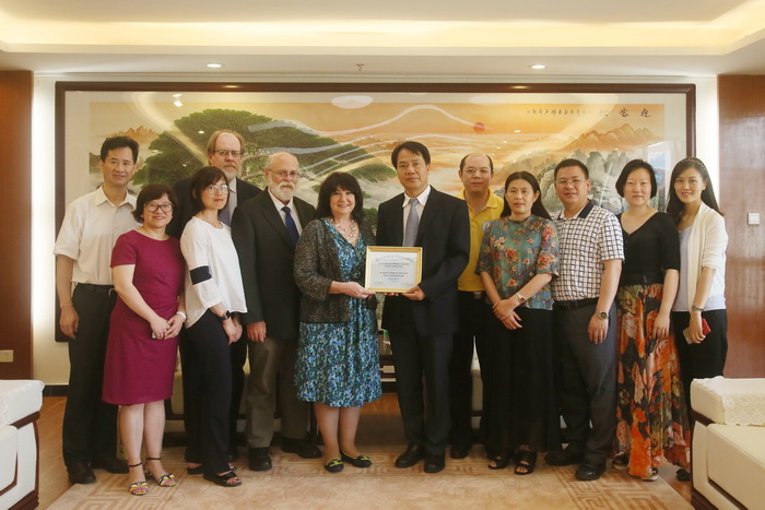 在面对面的会谈中,王新华校长和Mary MacDougall院长分别介绍了各自大学的基本情况,双方就今后两校之间如何再进一步深化各种交流项目及在各领域的合作可能性进行了交流探讨,如在学生互换交流学习、学分互认、暑期项目、教师培训、科学研究等方面交换了意见和看法,双方均表示非常乐意就对方的各种资源共享共赢、牵手合作。