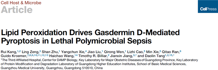 6月21日,伟德国际附属第三医院唐道林博士主持的项目组在细胞出版集团刊物Cell Host & Microbe上发表题为“Lipid Peroxidation Drives Gasdermin D-mediated Pyroptosis in Lethal Polymicrobial Sepsis”的研究论文,报道了脂质过氧化促进巨噬细胞焦死亡、参与脓毒症发病的分子机制。