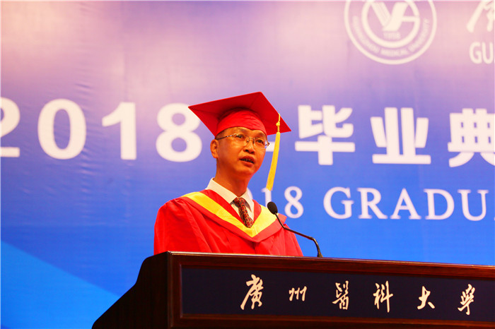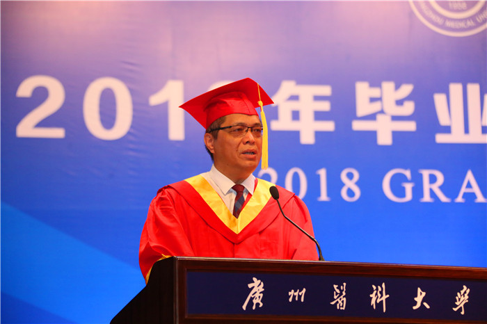 新征程,再出发,需要我们不忘初心,胸怀梦想。他以96届、91届校友邝周平、何永通扎根基层医院、乡镇卫生院20多年为例,鼓励同学们初心不改,用实干铸就梦想。党的十九大提出了“实施健康中国战略”,全方位、全周期保障人民健康,这为广医学子提供了施展才华、实现人生价值的广阔舞台。他希望大家将个人奋斗目标融入国家发展大局,用激扬的青春谱写逐梦的奋斗之歌。