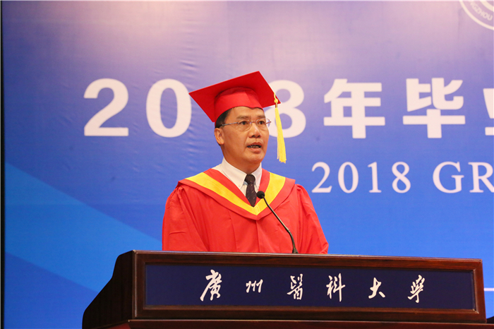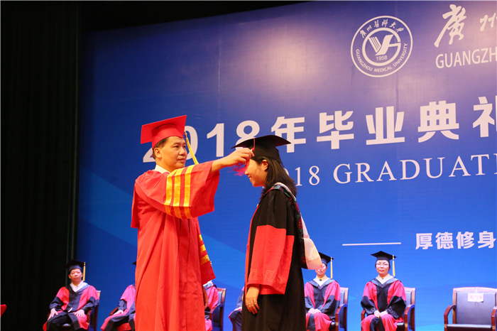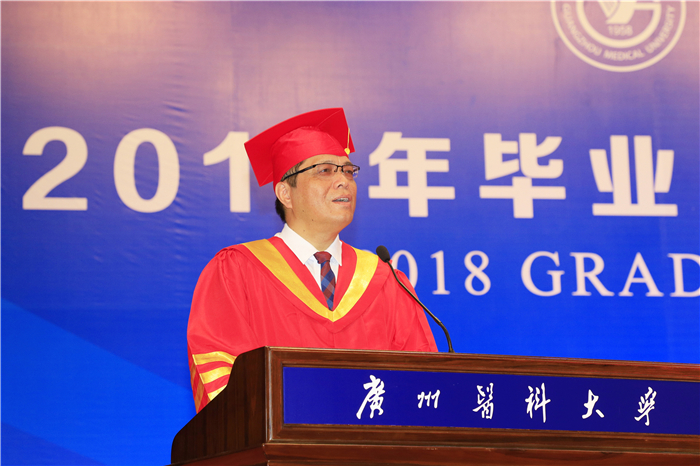 “看着大家的学术袍,让我想起自己当年的研究生时光。”来自附属第三医院的陈敦金教授,以自己的研究生求学经历为例,告诉同学们“习惯,是长时间的坚持”。希望大家把在广医求学期间的善用课余时间等好习惯继续保持,成为人生路上助力攀登的阶梯。“学习,是一辈子的事情”,希望同学们发扬广医人精神,一路学习,永不停歇。“立志,是攀峰的定心石”,鼓励大家对自己的梦想,多一点儿耐心和坚持。他以自己所在的妇产科等为例,鼓励同学们认真做事,追求优秀,“未来,让广医为你打CALL。”