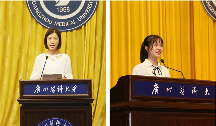 博士研究生杨倩倩同学、精神卫生学院萧芷代同学分别代表研究生新生、本科生新生发言,表达了对广医的赞美与热爱、对大学生活的期待与憧憬:心怀梦想,我们欢聚在伟德国际英国这个美丽的校园、崭新的舞台。选择了广医,就务必要脚踏实地,奋勇拼搏。“吾生也有涯,而知也无涯”,我们将谨记“广医人精神”、“南山风格”,在师长的引领下,不忘初心、潜心研究、求真求实,立德修身、勤学善思、勇于创新,肩负社会使命,实现梦想之花的绽放。