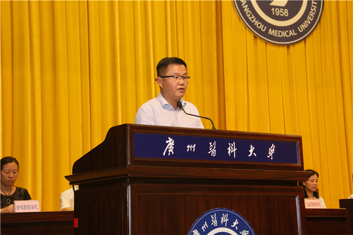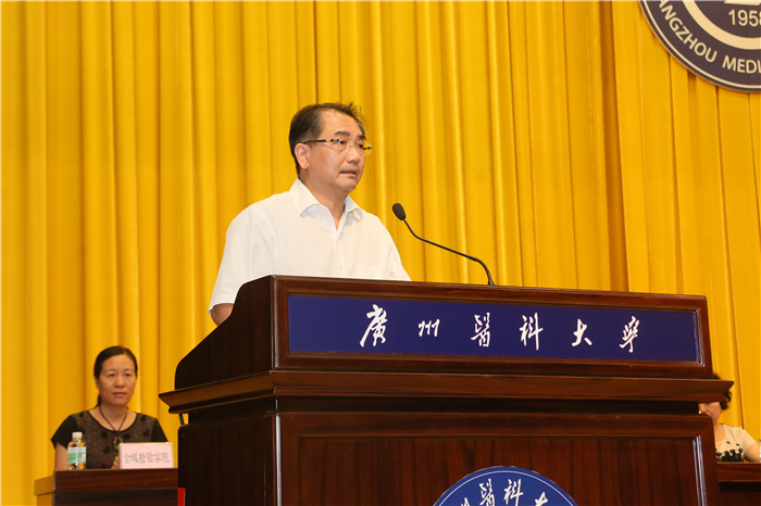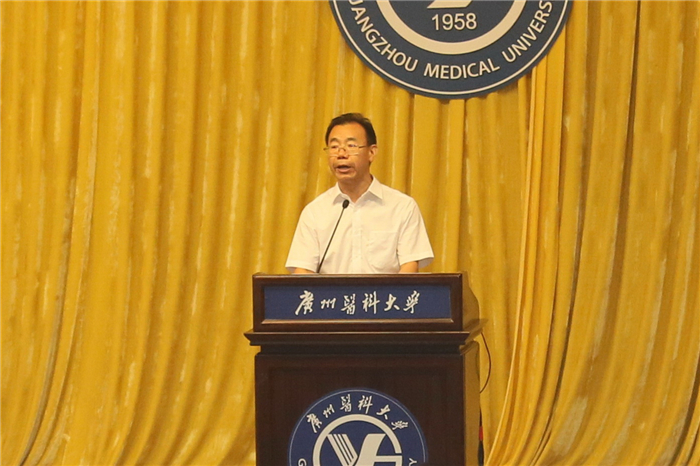 王新华校长代表学校对2018级新生表达热烈的欢迎和诚挚的祝贺。他说,同学们是广医历史上具有特殊意义的一届学生,因为今年11月学校将迎来建校60周年华诞。同学们的加入正逢其时,将参与和见证广医高水平大学建设的新征程,这既是荣耀,也是责任。