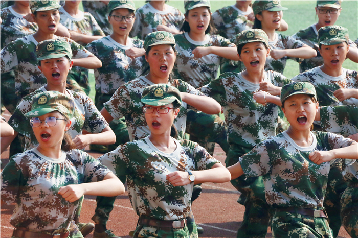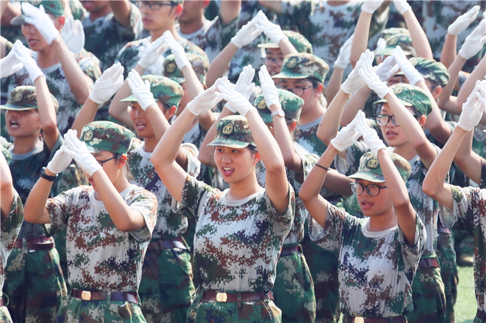 校长王新华检阅新生军训方队