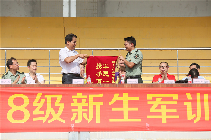 9月20日上午,伟德国际在番禺校区田径场举行2018级新生军训检阅暨总结大会。校长王新华、副校长胡丙杰、军训承训部队军训办主任钟锦成以及学校相关职能部门、各学院分管学生工作领导参加大会。大会由学校武装部部长主持。