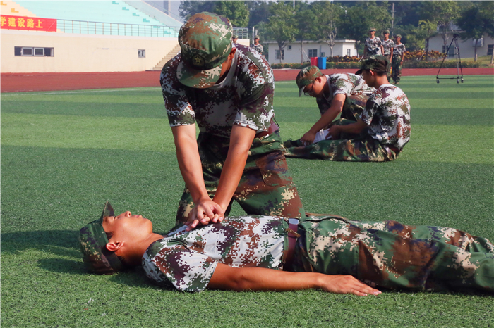 今年军训首次增加徒手心肺复苏急救技能培训项目,日前,广州广播电视台进行了相关报道