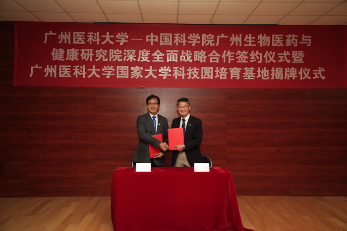 广州生物医药与健康研究院院长裴端卿研究员与伟德国际英国王新华校长代表双方签约