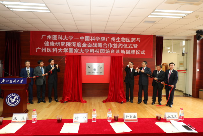 会后,“伟德国际英国国家大学科技园培育基地”揭牌仪式、伟德国际英国—中国科学院广州生物医药与健康研究院深度全面战略合作签约仪式举行。广州市政协刘悦伦主席、广州市人民政府王东副市长、中国工程院院士钟南山教授、伟德国际英国党委冉丕鑫书记、伟德国际英国王新华校长、广州市澳源科技基团有限公司曾日威董事长、广州呼研所医药科技公司周荣总经理共同揭牌。欧洲分子生物学组织(EMBO)院士、广州生物医药与健康研究院院长裴端卿研究员与伟德国际英国王新华校长代表双方签约。