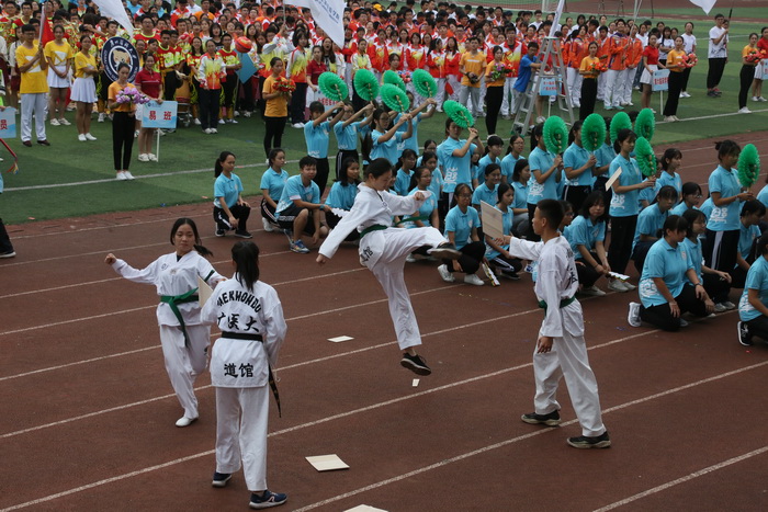 开幕式上,国旗队,彩旗队、鲜花队、裁判员代表队和各学院、附属医院运动员方阵气宇轩昂地步入场内。各个方阵的入场各具特色,舞蹈、舞旗、击鼓、队列造型以及师生排舞等表演精彩纷呈。随后,裁判和运动员代表进行了庄严宣誓。