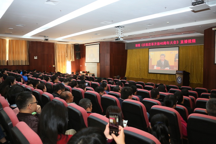 庆祝改革开放40周年大会于12月18日在北京举行。中共中央总书记、国家主席、中央军委主席习近平出席大会并发表重要讲话。伟德国际组织收看大会视频直播,其中,校本部教职员工分别在番禺校区、越秀校区收看;各附属医院职工在医院收看。
