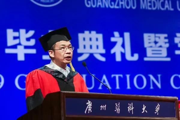 国务院特殊津贴专家、广东省医学领军人才、广州呼吸健康研究院罗远明教授代表教师发言。结合自身从广医毕业后在世界著名大学的留学、任职经历,他认为,广医有一流的学科、一流的专业、一流的学者,这份履历足以支撑同学们精彩人生的启程,他自身亦始终把广医作为研究工作的大本营。科学研究除了质疑与批判思维,还需要毅力、付出和冒险精神,希望同学们坚守专业理想,以高质量的创新服务国家、成就自我。