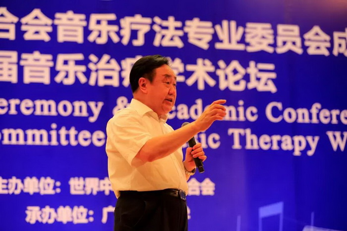 上海音乐学院院长廖昌永教授作题为“开创跨学科合作的新时代——音乐治疗学科的社会意义与专业机遇”的演讲。他从音乐家的角度,分析了音乐与医学的紧密关系,回顾了中西音乐疗法的缘起与沿革,介绍了目前音乐治疗的主要流派和主要领域。通过分析国内音乐治疗的需求与现状,从“健康中国”战略的高度,论述了音乐疗法专委会成立的意义和必然性。他以音乐学院院长的视野,介绍了目前国内高校音乐疗法专业的人才培养情况,通过具体案例分享了上海音乐学院在音乐治疗专业建设方面的做法,探索了音乐与医学结合的各种可能性,特别是音乐与中国传统医学结合的前景,并表达了对上海音乐学院与伟德国际英国深度合作的期待。