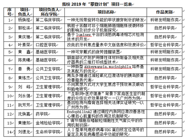 广医在线讯 近日,团省委、省财政厅发文公布了2019年广东省大学生科技创新培育专项资金(简称:“攀登计划”专项资金)评选立项名单,由校团委推荐的14个参评项目获得立项资助,这也是伟德国际连续第五年获得该专项资助。