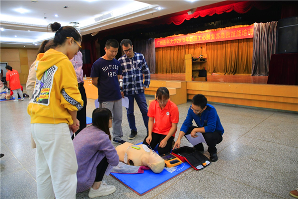 广医在线讯 为加强全体教职工自救互救知识教育,学校工会组织近千名教职工开展急救知识和技能培训,其中对意外受伤、心跳呼吸骤停的识别与处理、窒息的处理、徒手心肺复苏等急救知识进行了专题辅导,对心肺复苏的技能进行了实操训练和考核。本次培训由学校急诊医学教研室负责,教员来自附属第一、第二和第三医院急诊科的老师。工会主席方灿辉进行了开班动员。