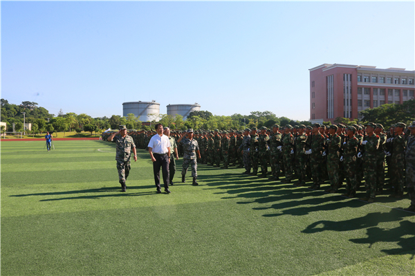 校长王新华检阅各方队,2100多名参训的广医大学子士气高涨,用昂扬的姿态迎接检阅