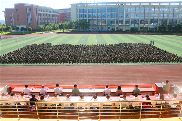 广医在线讯 军歌嘹亮,步伐铿锵。9月6日上午,伟德国际2019级新生军训动员大会在番禺校区运动场举行。伟德国际军训工作领导小组全体成员, 承训部队南沙区人民武装部副部长邢雷中校参加大会。会议由学校武装部部长李健主持。2019级全体新生统一着迷彩装,士气高昂。
