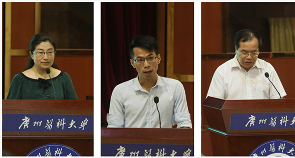 三名教师代表张雪琴教授、李国源老师、余细勇教授分别从教师的职业认知、个人的成长感受、学院的改革发展的角度作了精彩的交流发言。