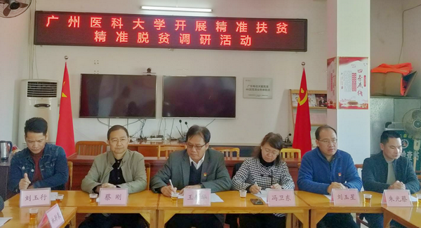 王新华校长一行首先在村委听取了驻村党组织第一书记兼队长邓茂发就村近期工作情况和下一步工作设想的汇报,并与镇领导和村“两委”干部进行了座谈交流。王校长对高岭村在精准扶贫精准脱贫方面取得的成绩表示欣慰,也鼓励大家瞄准目标,结合当地实际情况落实扶贫政策,让广大群众有更多的幸福感和获得感。他表示,学校对新时期精准扶贫精准脱贫工作高度重视,加强组织领导,严格按照省委省政府和市委市政府的要求,扎实推进高岭村精准扶贫精准脱贫攻坚工作。针对高岭村精准扶贫工作的开展现状及未来规划,他提出三点意见:一是要守初心、担使命,巩固主题教育成效,全面加强党建扶贫促脱贫攻坚行动;二是加强扶贫项目管理和开发,提高扶贫效益,对新成立的项目要加强调研和认证;三是要根据脱贫攻坚指标体系梳理排查问题,补齐短板,做好扫尾、收官和起步工作,并要充分发挥学校医疗优势,预防因病致贫的发生。