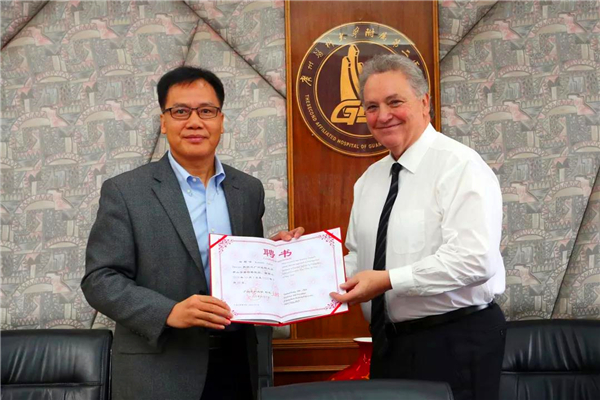 王新华校长对Dawson教授取得的学术成就给予高度评价,对其加盟广医表示欢迎,期望他和他的团队为附属第二医院纳米领域的临床研究等方面提供更多的指导与支持。Dawson教授对医院的发展势头和纳米研究临床转化的条件资源予以肯定,表示非常荣幸成为广医的特聘教授,将发挥自身所能推动医院纳米科技整体研究水平,增强医院的影响力。附属第二医院党委书记刘世明表示将全力支持Dawson教授的研究工作,通过加强和扩大各学科间的交流合作,为学校高水平大学建设努力。