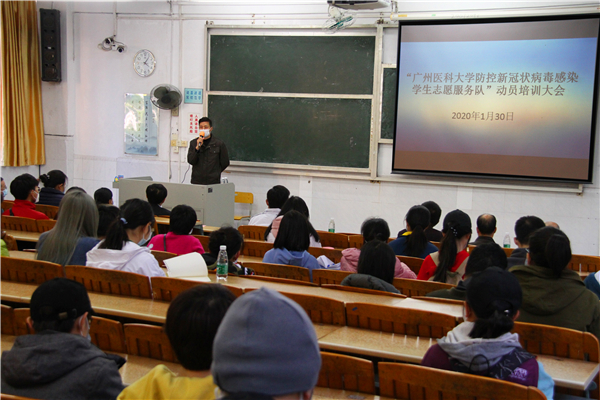 广医在线讯 为全力支持配合广州市疫情防控工作,根据市委市政府要求,伟德国际正分批次组建学生志愿队伍,首批志愿队伍由50名学生组成,他们将在指导老师和辅导员的带领下,前往广州南站等广州主要交通站点开展测量体温等志愿服务。1月30日,学校在越秀校区召开防控新型冠状病毒感染学生志愿服务队动员培训大会。副校长赵醒村、广州市卫健委疾控处处长范乔阳、广州市疾控中心相关科室负责人、学校相关职能部门和学院负责人、学生志愿者代表等参加会议。会议由学生工作部部长陈伟民主持。