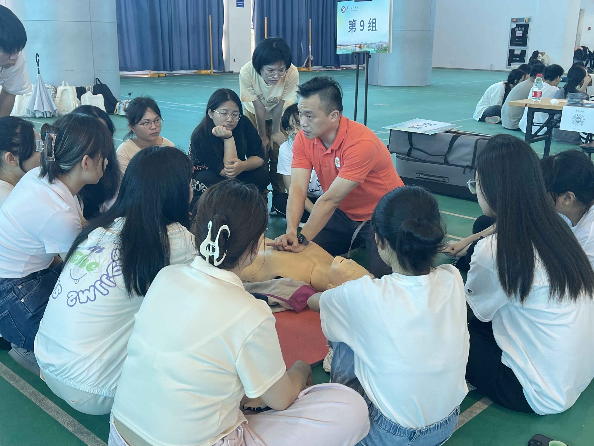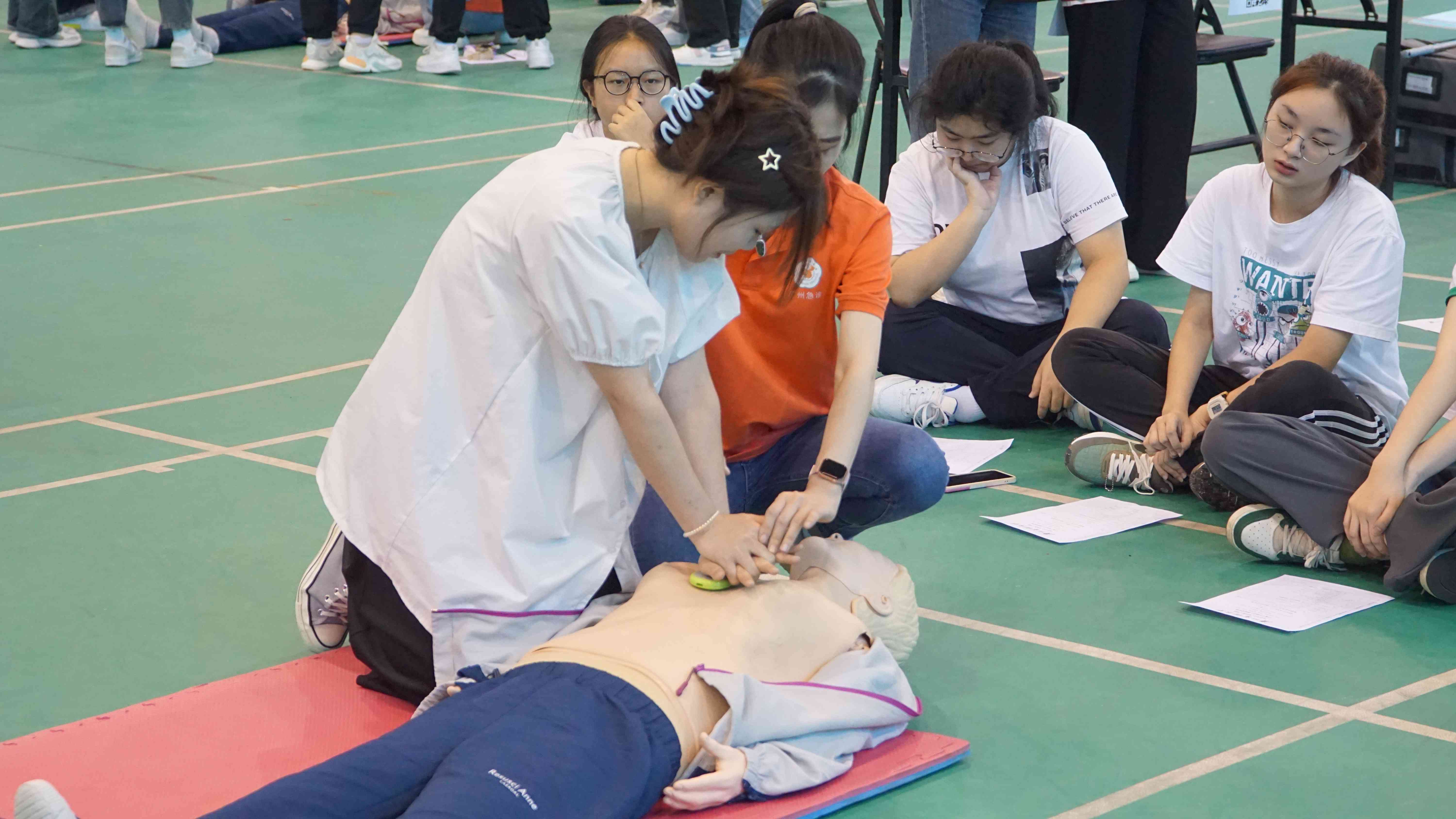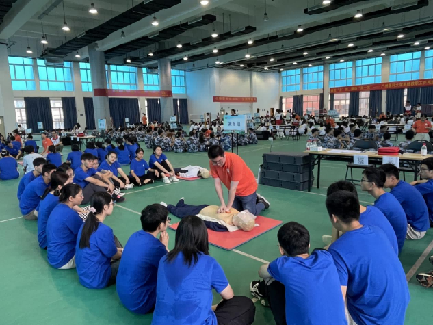 本网讯 9月4-7日,学校开展新生实践教学第一课《“救”在身边》,培训大学生心肺复苏急救技能。本次培训包括理论授课和小组实践操作,其中,实践操作在3天时间内共开展了5场,2100余名大一新生接受培训。