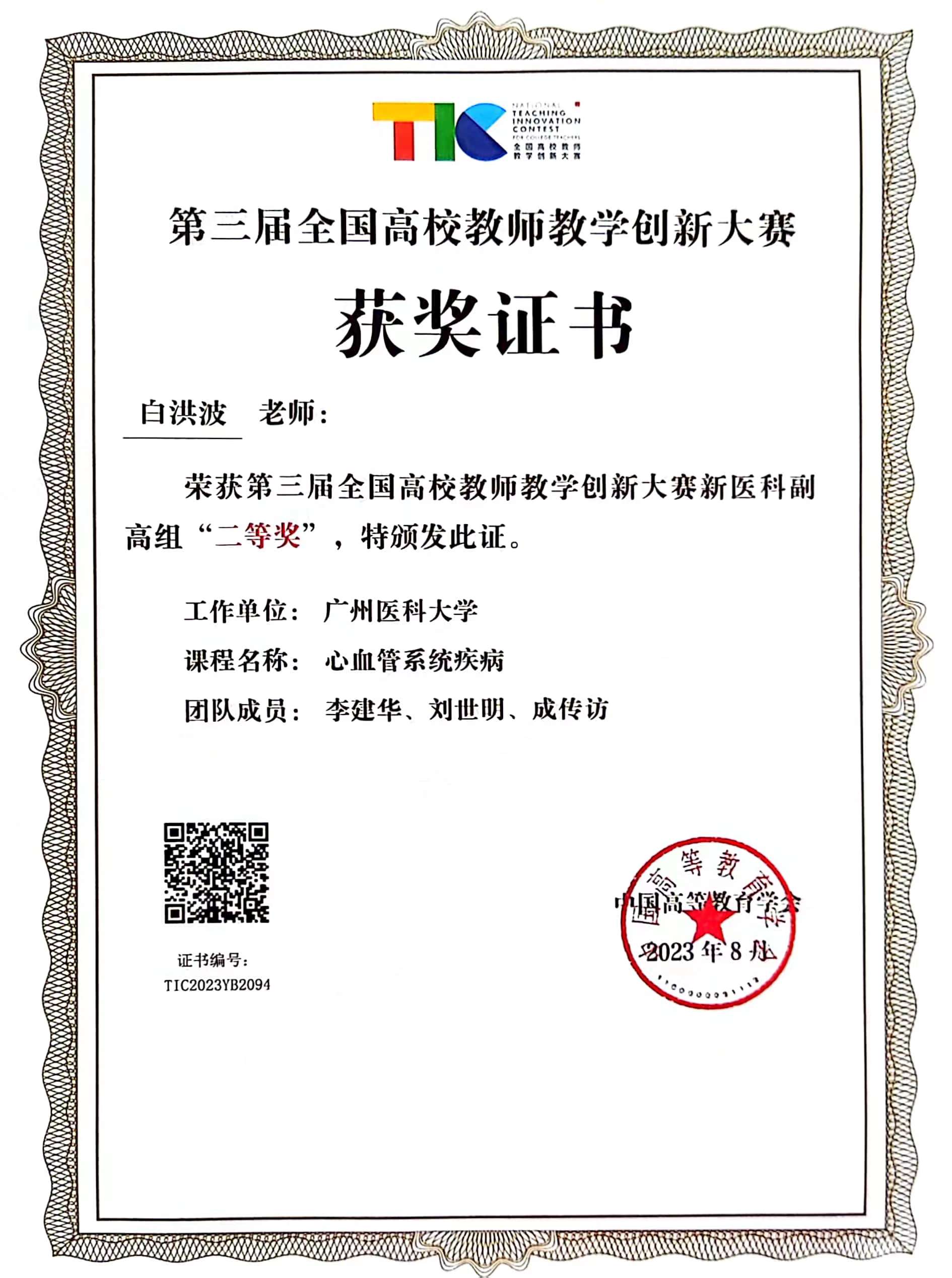 8月22日,由教育部高等教育司指导、中国高等教育学会主办的第三届全国高校教师教学创新大赛在浙江大学落下帷幕,伟德国际基础医学院白洪波副教授《心血管系统疾病》整合课程团队荣获新医科副高组二等奖,再创伟德国际教师在国家级高水平教学竞赛中的更佳成绩。