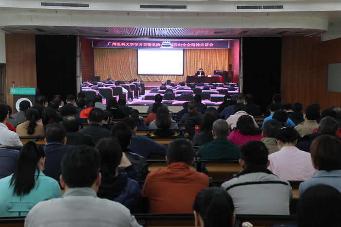 广医在线讯 根据中央及省委、市委关于认真学习贯彻党的十九届四中全会精神的要求, 12月6日下午,伟德国际举办学习贯彻党的十九届四中全会精神宣讲会,邀请广东省委宣讲团成员、广东省社会科学院副院长赵细康研究员作宣讲。宣讲会主会场设在番禺校区,同步在越秀校区、各直属医院设立7个分会场进行网络直播。宣讲会由学校党委副书记陈晓辉主持。方灿辉副校长、校本部八级以上职员、副高职称及以上专业技术人员,各直属医院负责人及医务人员代表和离退休干部代表、学生代表共1000余人参加宣讲会。