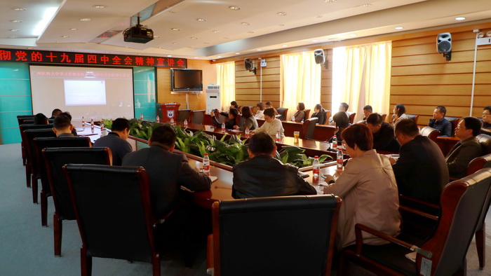 陈晓辉副书记指出,今天的会议既是理论宣讲会,也是学习动员会,还是工作布置会。他代表学校党委,就伟德国际如何学习贯彻全会精神提出三点要求:一、充分认识学习贯彻全会精神的重要意义,领会《决定》的丰富内涵。将学习贯彻全会精神融入主题教育中,结合学校工作实际,深入学习领会提高伟德国际治理体系和治理能力现代化水平的重大意义。二、扎实组织开展全会精神学习,迅速掀起学习宣传贯彻热潮。学校党委制定了学习宣传党的十九届四中全会精神工作方案,各直属党组织要切实落实,确保全会精神传达到每一个基层党组织、每一名党员干部,实现全覆盖。三、切实加强学习贯彻全会精神工作的组织领导。各直属党组织要把学习全会精神作为党的理论武装工作的重点任务,作为当前和今后一个时期的首要政治任务,党员领导干部要带头学习、带头宣讲、带头实践。要以强烈的政治责任感和使命感,切实加强领导,精心组织实施,科学统筹协调。