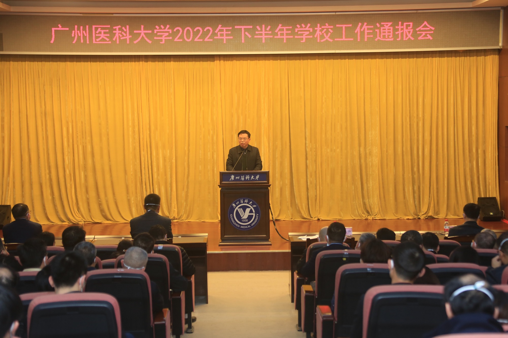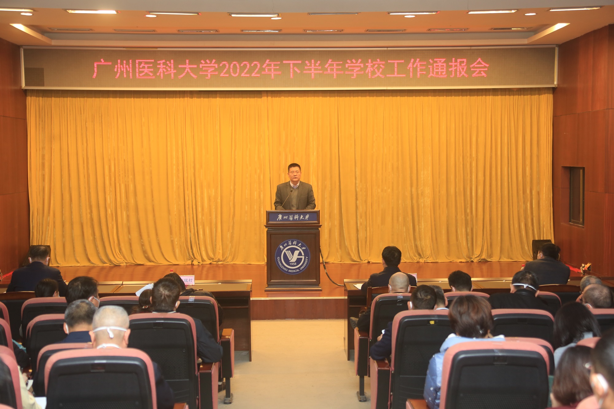 1月5日,学校2022年下半年工作通报会于番禺校区召开。全体学校领导,校本部相关管理干部、副高职称及以上专业技术人员和教代会代表,各附属医院相关负责人等参加会议。会议由唐小平书记主持。