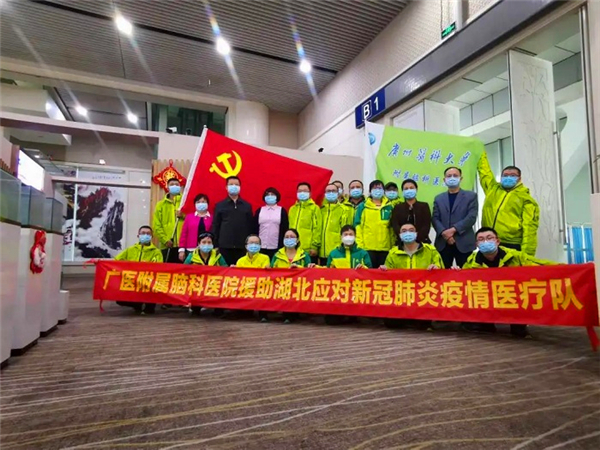 广医在线讯 2月24日,根据广东省卫健委的要求,伟德国际英国附属脑科医院派出由15名医生构成的心理医疗队驰援湖北,于当日下午在广州南站集结出发,这是附属脑科医院首次出征湖北。