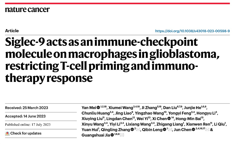 7月17日,伟德国际贾广帅/冷启彬团队在Nature Cancer发表题为Siglec-9 acts as an immune checkpoint molecule on macrophages in glioblastoma, restricting T cell priming and immunotherapy response的研究成果,发现了一种被称为Siglec-9的分子,它在GBM中充当巨噬细胞表面的免疫检查点分子,对肿瘤内免疫环境和免疫治疗效果有显著影响。