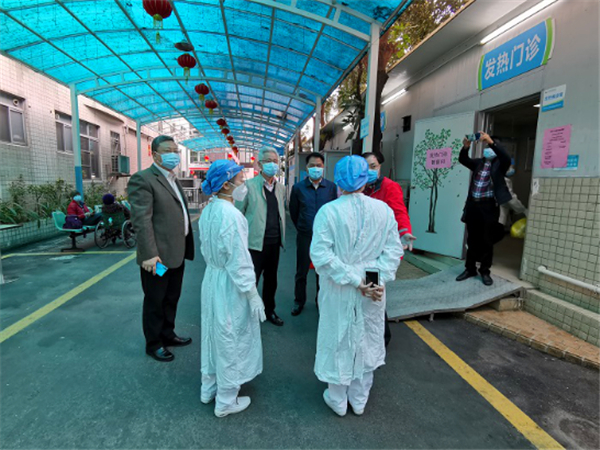 在附属第三医院、附属第五医院、附属肿瘤医院三家非定点医院,冉书记结合各医院的具体情况提出防控指导意见:附三院是广医系统最先接诊阳性患者的医院,要进一步优化发热门诊流程与候诊区域,从源头上做好接转诊等防控工作;附属肿瘤医院节后将迎来大量外地患者,肿瘤患者免疫功能低下,更易感染与交叉传染,务必加强防控措施,建议邀请专家对院内进行全员培训,提高传染病防控经验;附属第五医院作为黄埔区最大的三级综合医院,黄埔区外来人口众多,要优化医院通道,加强对进院人员的监测特别是加强对发热的管控。