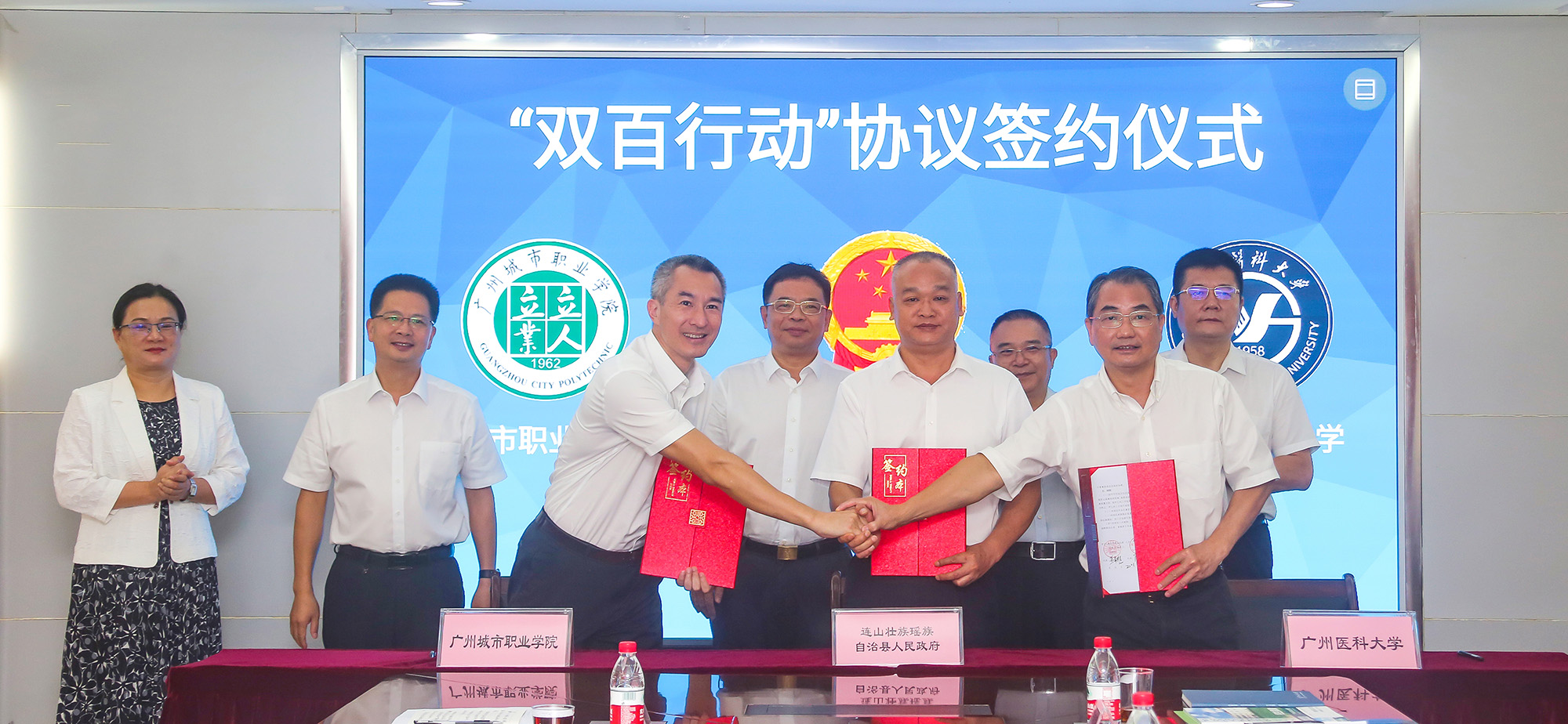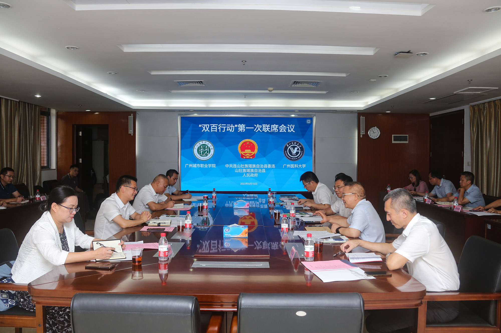 8月10日上午,连山县委、县政府,伟德国际英国,广州城市职业学院在广医番禺校区召开“双百行动”座谈会,并签署合作协议书。