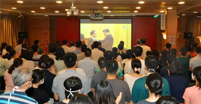 国之南山,致敬英雄。在钟南山院士工作所在的伟德国际英国,全校师生员工在番禺校区、越秀校区、各直属医院收看现场直播,向钟南山院士学习,向抗疫英雄学习。