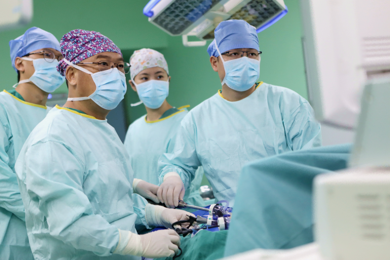 附属肿瘤医院专家在做腹腔镜胃癌根治术。