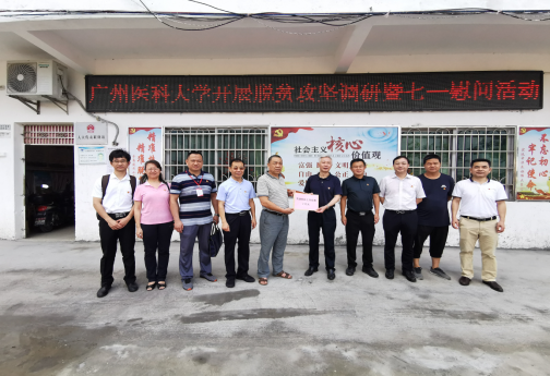 在建党99周年来临之际,冉丕鑫书记代表学校向高岭村党总支捐赠了党建帮扶工作经费,并为党员贫困户送上了慰问金。