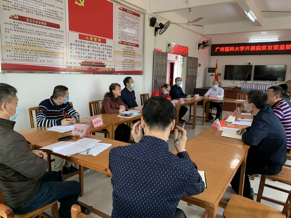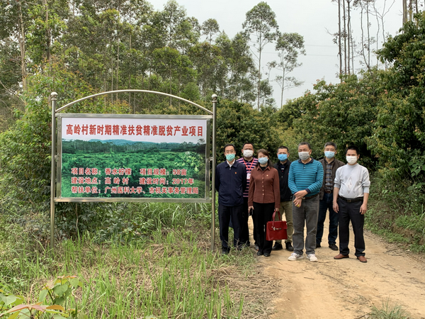 广医在线讯 2020年是脱贫攻坚决战决胜、全面收官之年。为巩固扶贫成果,打好精准扶贫精准脱贫攻坚战,4月10日,由学校纪委书记周国清带队,学校工会副主席、扶贫办主任冯卫东,纪委副书记程东海,学校机关第二党总支书记周如建,审计处副处长戚永忠,纪检监察室副主任翁永明,附属第五医院纪委书记吴璧锋,扶贫办林渺泉老师一行到访学校定点扶贫单位——清远市佛冈县汤塘镇高岭村开展脱贫攻坚监督检查工作暨调研慰问活动。汤塘镇党委委员朱光蔡、高岭村驻村干部和村两委干部等陪同检查和调研慰问。