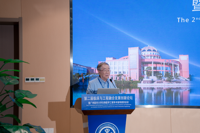 校长赵醒村代表学校对各位专家表示诚挚欢迎。他指出,在国家重大战略需求驱动下,多学科交叉融合和多技术跨界联合已经成为常态,大力推进“医学+”多学科交叉融合与创新发展,是培养复合型医学拔尖创新人才的有效途径,更是助力健康中国建设、服务国家经济社会高质量发展的内在需求。齐聚广州开展第二届临床与工程融合发展创新论坛,共同交流医学与工程交叉融合的最新研究成果,充分体现了各位专家学者推进医工融合发展的使命感和责任感,对于促进医学诊断与治疗技术创新发展,保障人民生命健康,具有十分重要的意义。举行广医生物医学工程学院学术发展委员会成立大会,聘请国内知名学者担任学术发展指导专家,为生物医学工程学科建设梳理发展思路、谋划发展路径,这必将有效推进生物医学工程学院的建设发展,也将为广医高质量推进“双一流”建设提供有力支撑。
