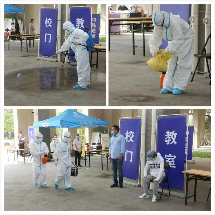 应急处置模拟演练在4月10日演练的基础上扩大了应急场景范围:一是模拟校门口测温发现学生发热时的处置;二是在教室上课过程中,发现学生呕吐,送校医室就诊、体温筛查、转运及跟踪处置;三是宿舍有流行病学史的学生出现发热症状,送校医室就诊、体温筛查、转运及跟踪处置。