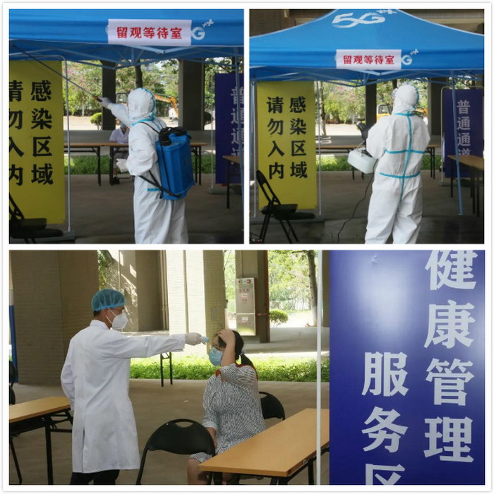 在演练现场,包括校门口保安人员、门诊部接诊医护、出现症状学生、上课教师、辅导员、后勤工作人员等在内的参演队伍,在现场指挥的主导下,严格遵循“早发现、早报告、早处置”的原则,将动作、场景、对白、旁白加以融合,衔接有序、环环相扣,一幕幕推进演练。