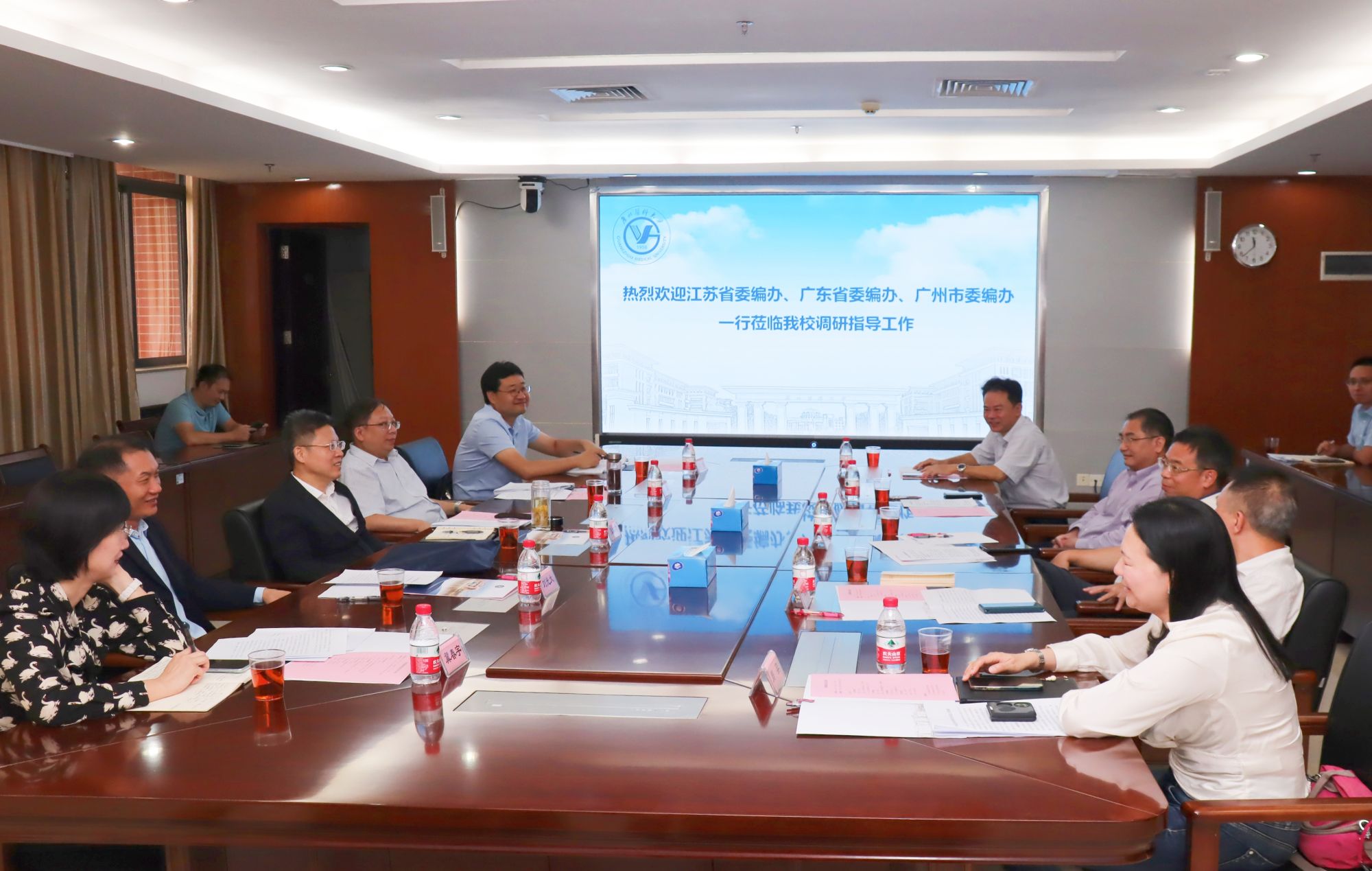 10月19日上午,江苏省委编办副主任张学才、广东省委编办副主任刘光大、广州市委编办副主任贺立峰等一行7人来伟德国际调研高校人员总量管理、深化事业单位改革等工作情况。学校党委书记唐小平、副书记陈晓辉等陪同调研。