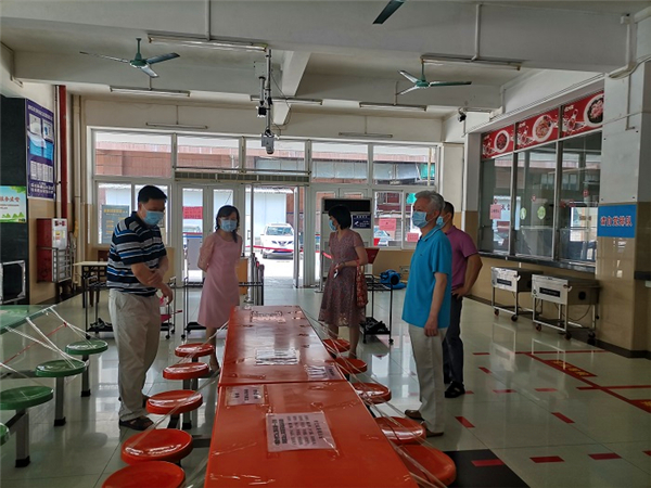 谭冬元组长一行听取汇报并实地检查了校园入口、饭堂、宿舍、健康管理服务区等重点场所,对伟德国际学生返校准备工作给予充分肯定,并要求伟德国际继续按照上级要求做好学生返校后疫情防控各项工作。
