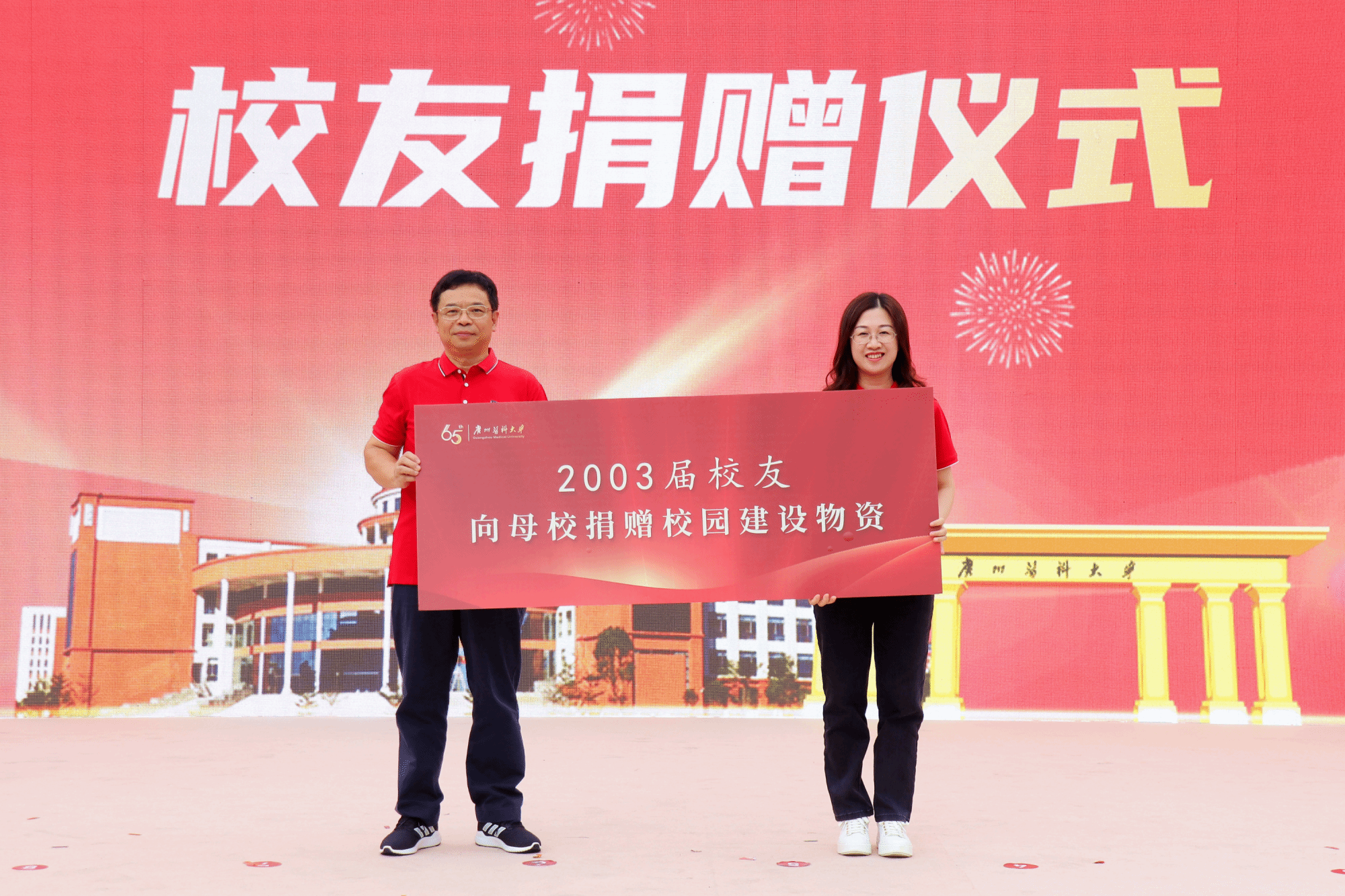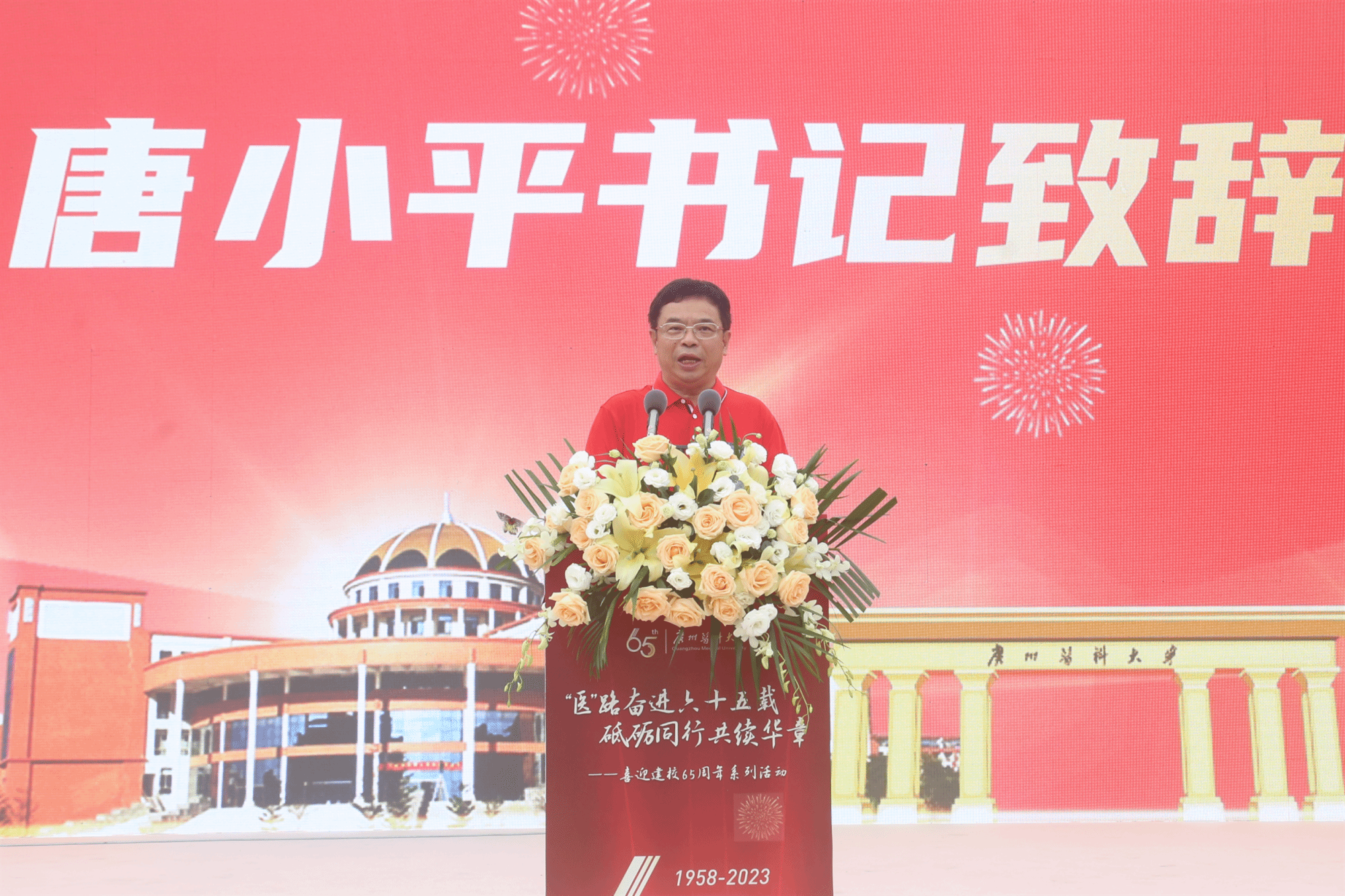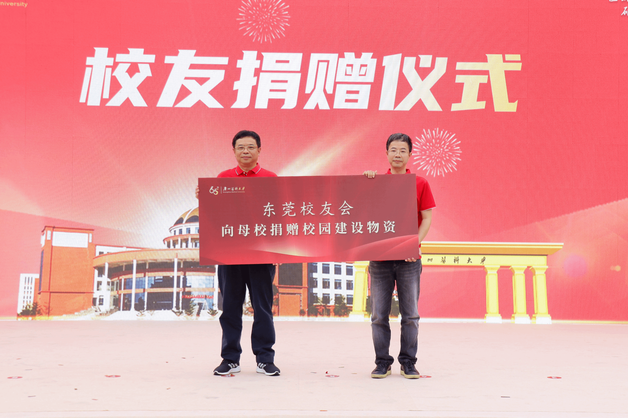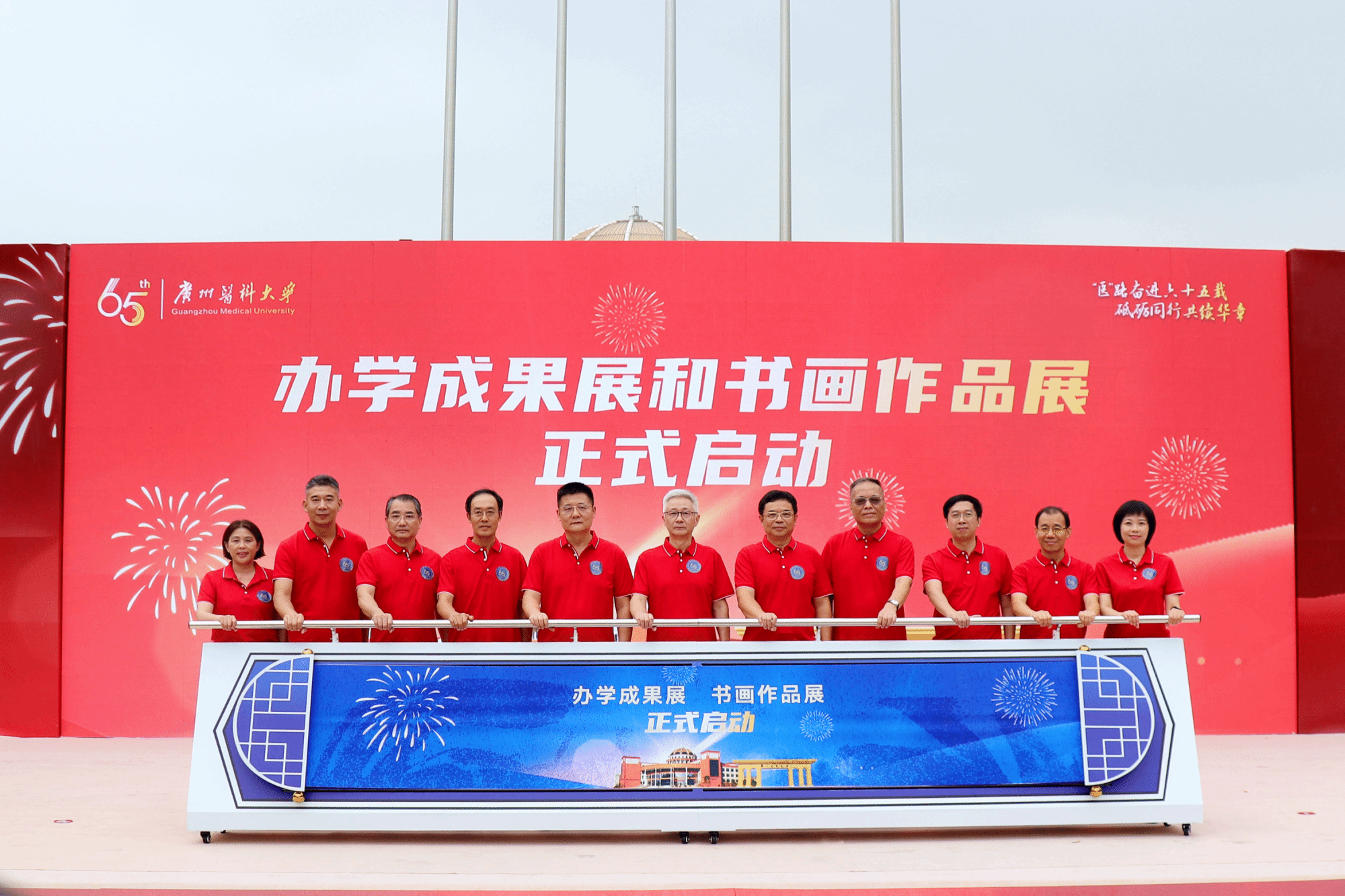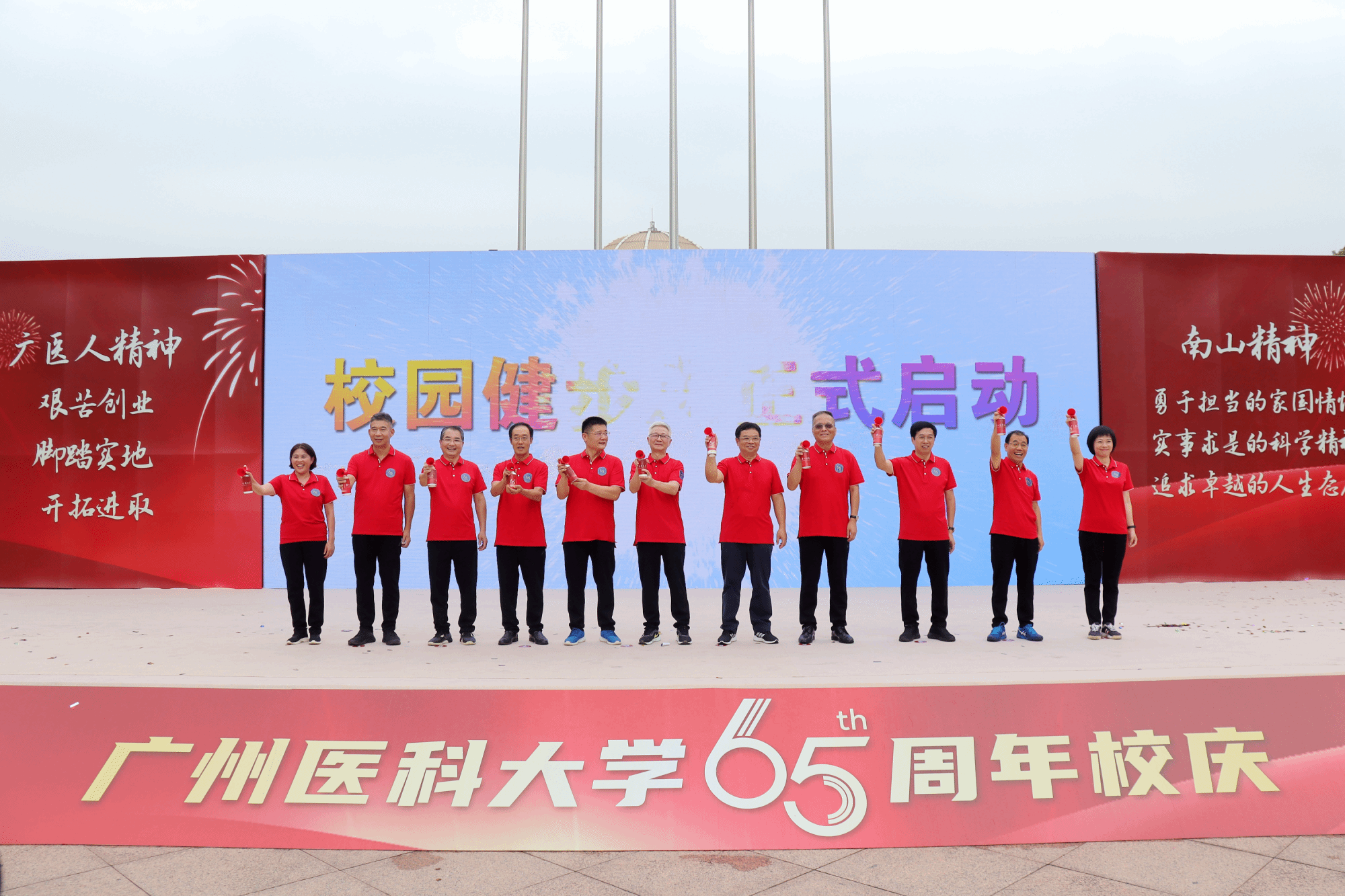 初心如炬,奋进如歌。与会人员共同观看65周年校庆祝福视频。在视频中,在校学生和世界各地校友为广医送上了真挚的祝福。随后,65周年校庆系列活动正式拉开帷幕。